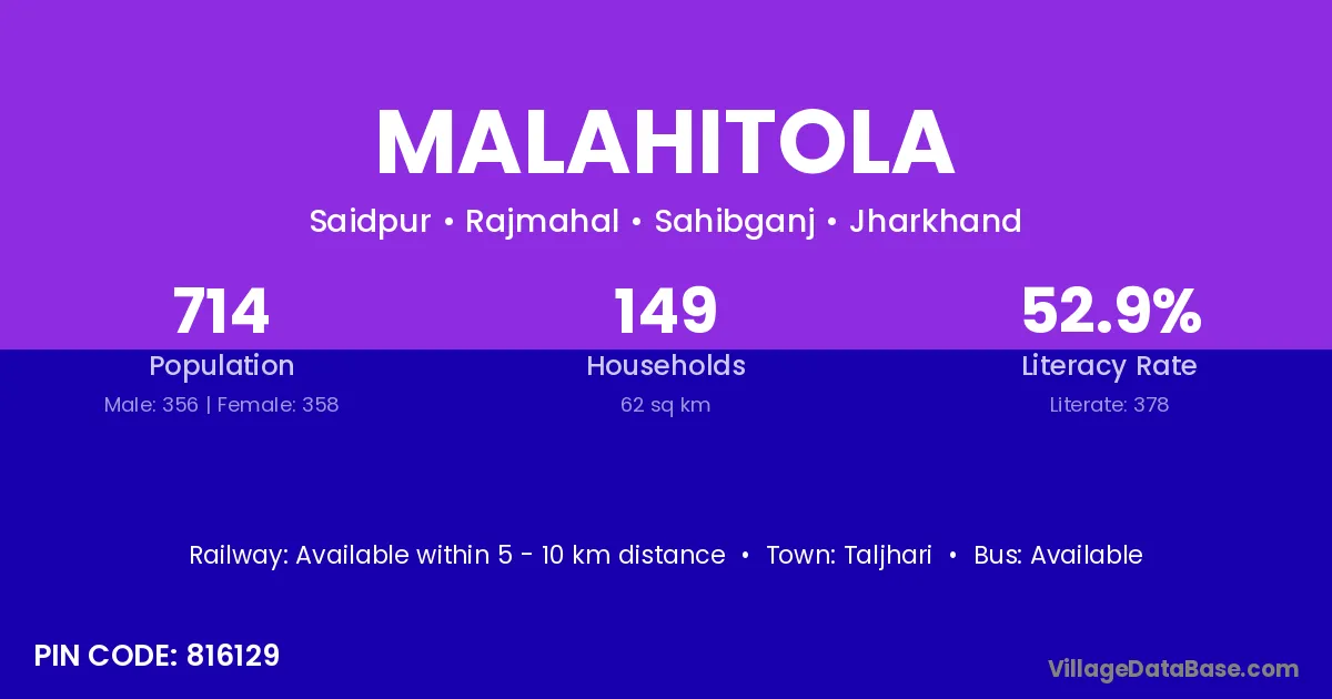 Taljhari is the nearest town to Malahitola village for major economic activities