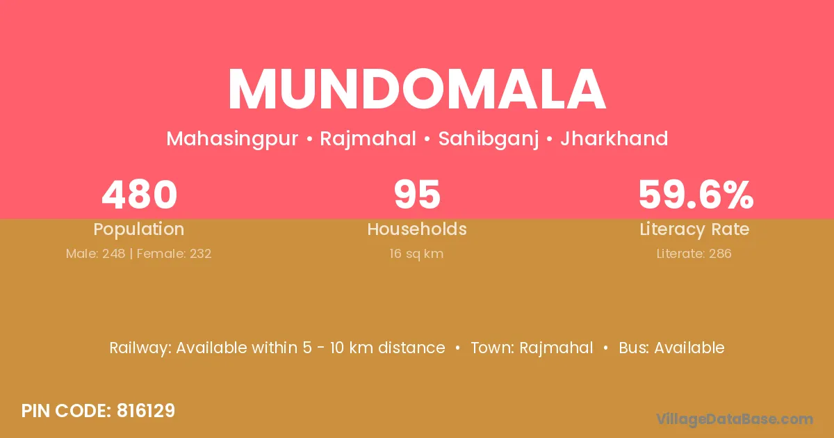 Rajmahal is the nearest town to Mundomala village for major economic activities