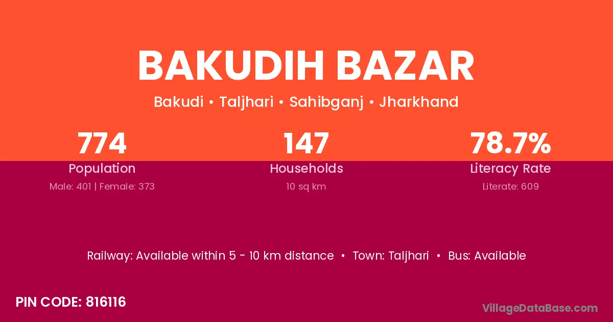 Taljhari is the nearest town to Bakudih Bazar village for major economic activities