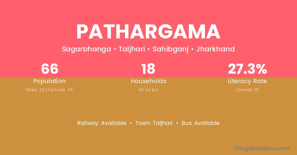 Pathargama village has a total population of 66 people, of which 32 are males and 34 are females.