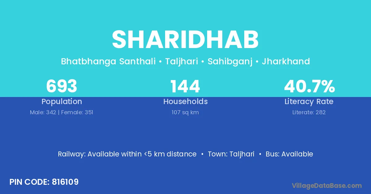 Taljhari is the nearest town to Sharidhab village for major economic activities