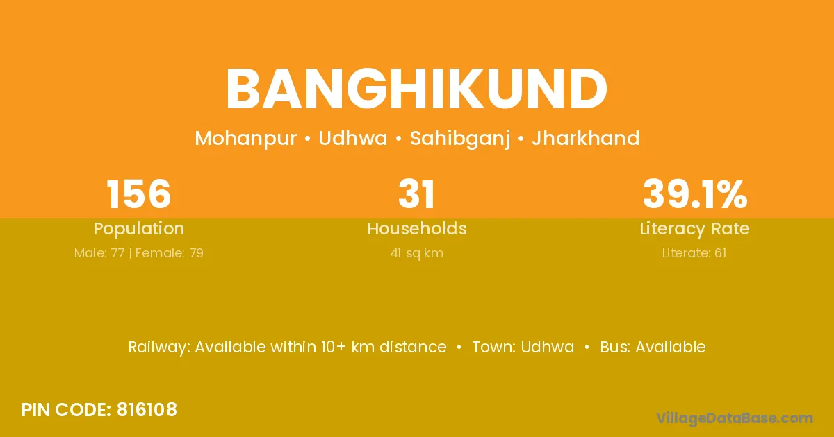 Udhwa is the nearest town to Banghikund village for major economic activities