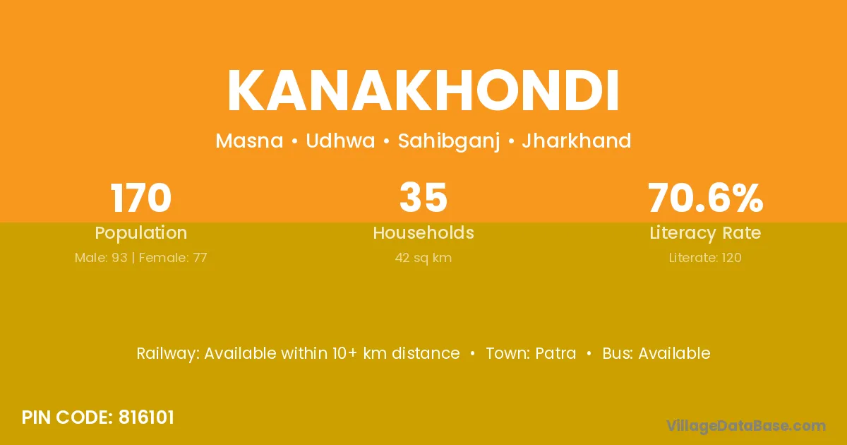 Kanakhondi village has a total population of 170 people, of which 93 are males and 77 are females.
