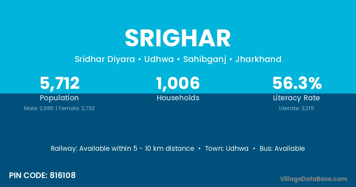 Udhwa is the nearest town to Srighar village for major economic activities