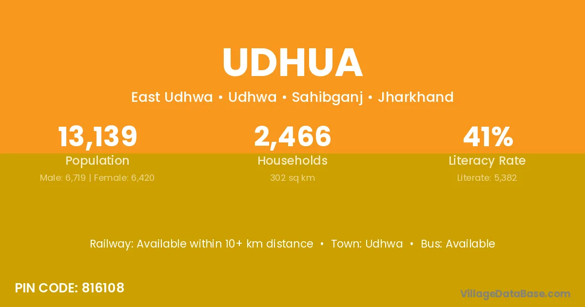 Udhwa is the nearest town to Udhua village for major economic activities