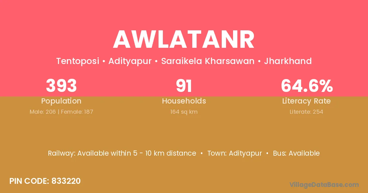 Adityapur is the nearest town to Awlatanr village for major economic activities