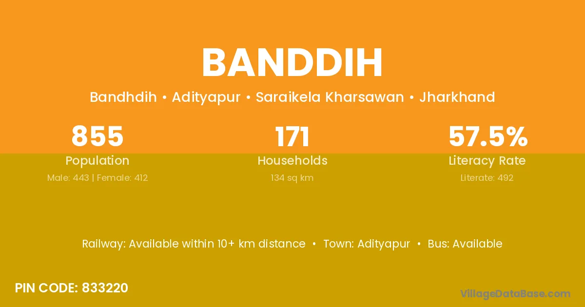 Adityapur is the nearest town to Banddih village for major economic activities