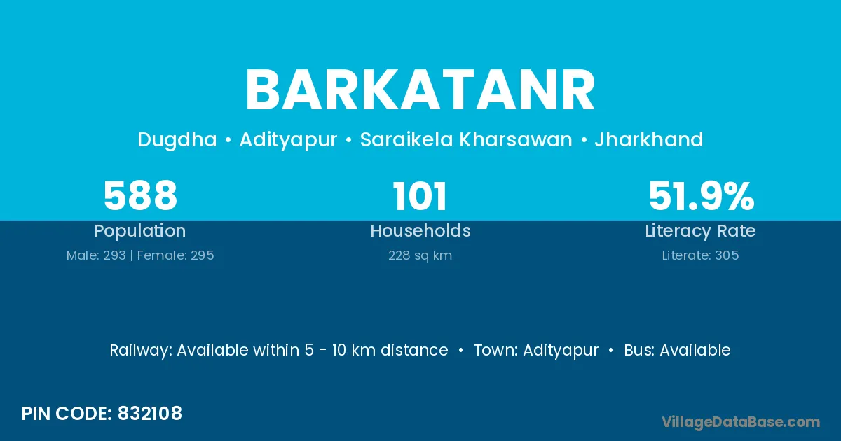 Adityapur is the nearest town to Barkatanr village for major economic activities