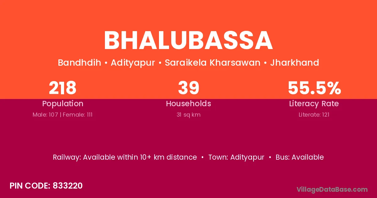 Bhalubassa village is located in the Adityapur Subdivision of the Saraikela Kharsawan district in Jharkhand .
