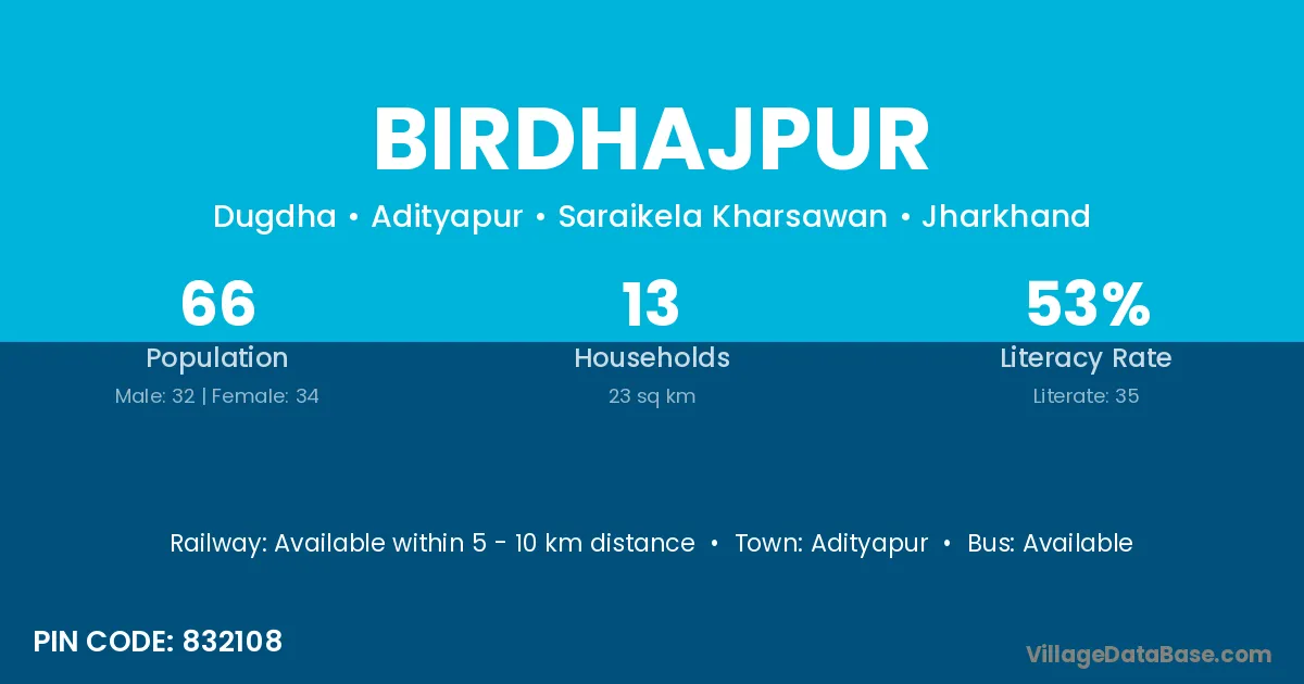 Adityapur is the nearest town to Birdhajpur village for major economic activities