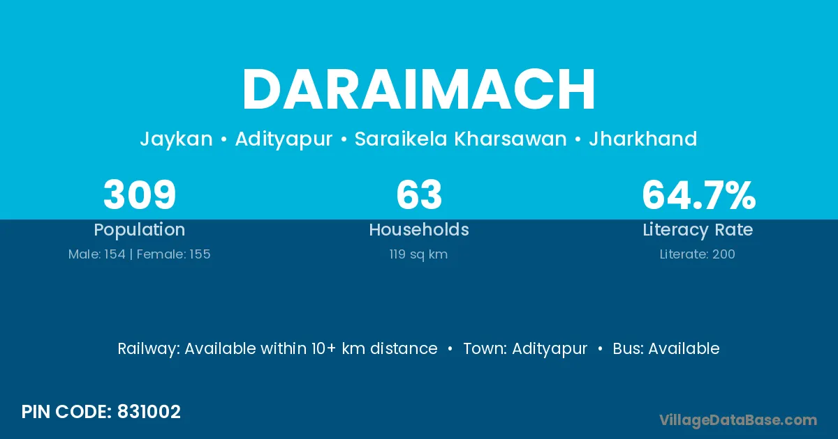 Adityapur is the nearest town to Daraimach village for major economic activities