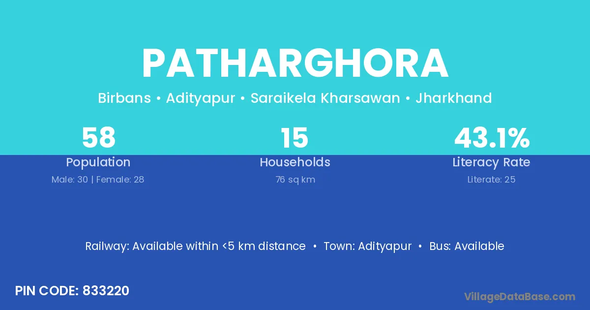 According to Census 2011 information, the village code of Patharghora village is 833220.