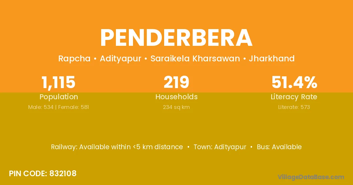 Adityapur is the nearest town to Penderbera village for major economic activities