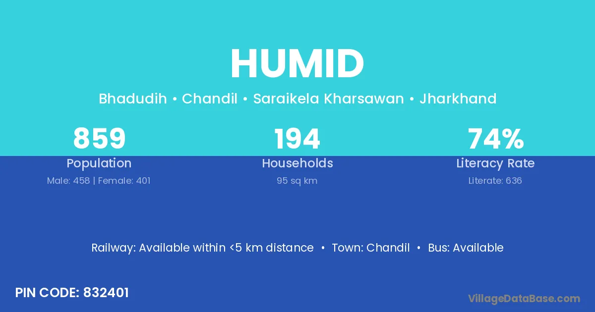 Chandil is the nearest town to Humid village for major economic activities