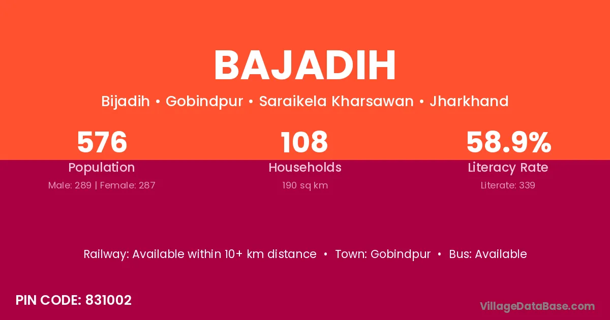 According to Census 2011 information, the village code of Bajadih village is 831002.