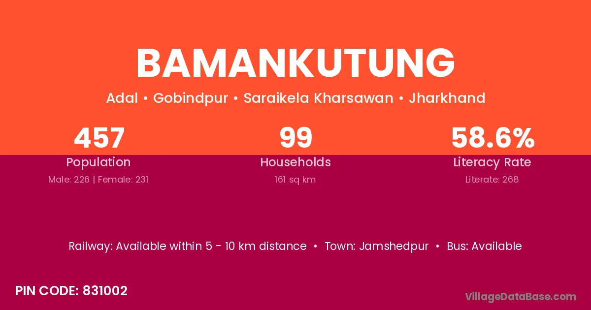 Jamshedpur is the nearest town to Bamankutung village for major economic activities