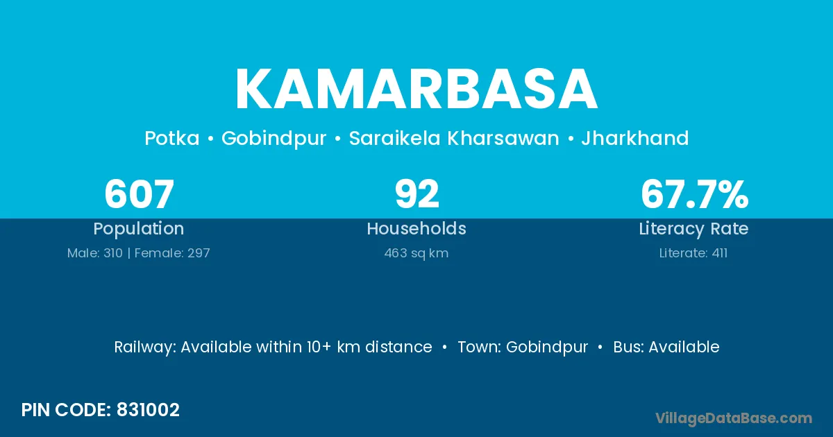 Kamarbasa village has a total population of 607 people, of which 310 are males and 297 are females.