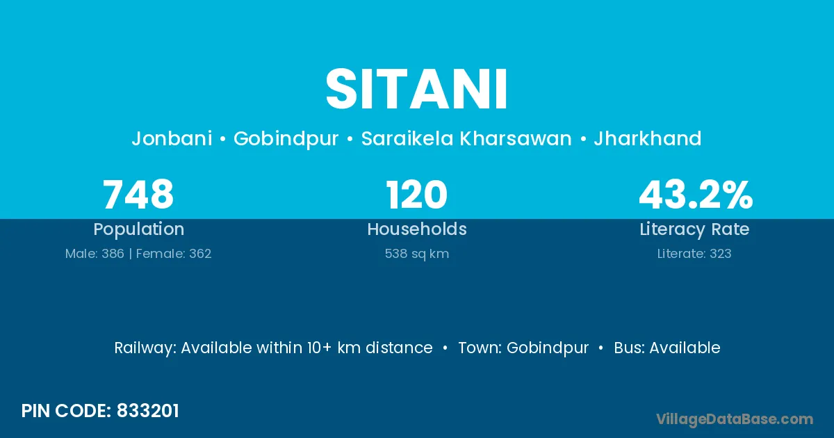According to Census 2011 information, the village code of Sitani village is 833201.