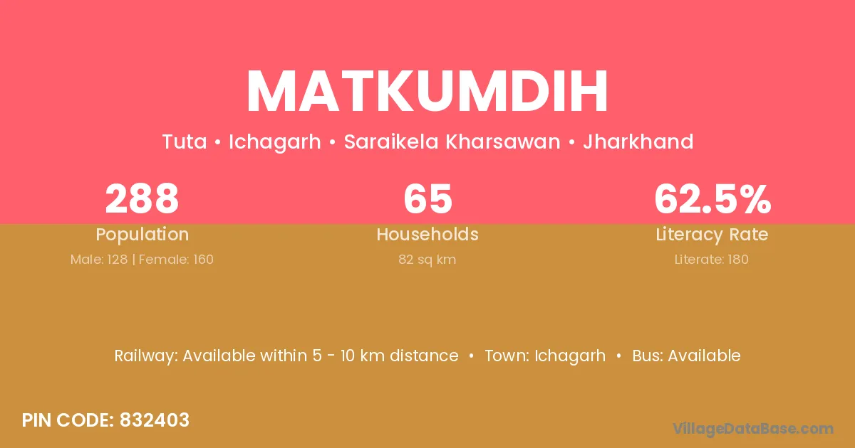 Ichagarh is the nearest town to Matkumdih village for major economic activities