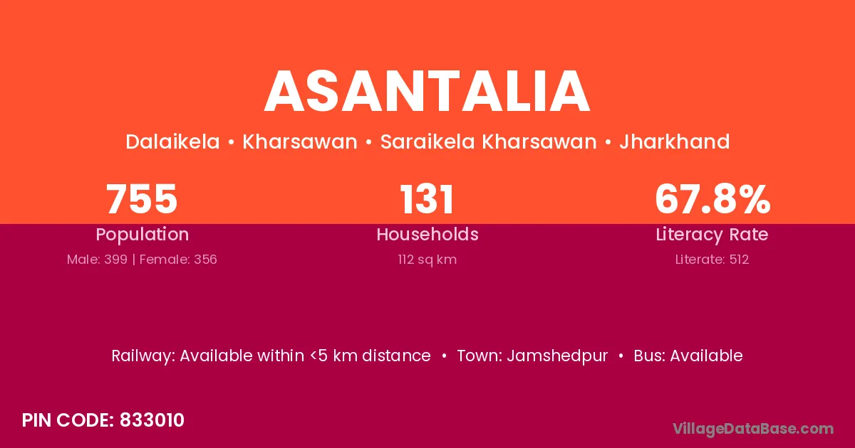 Jamshedpur is the nearest town to Asantalia village for major economic activities