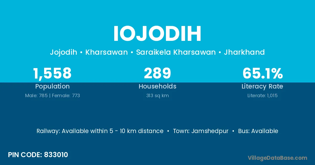 Jamshedpur is the nearest town to Iojodih village for major economic activities