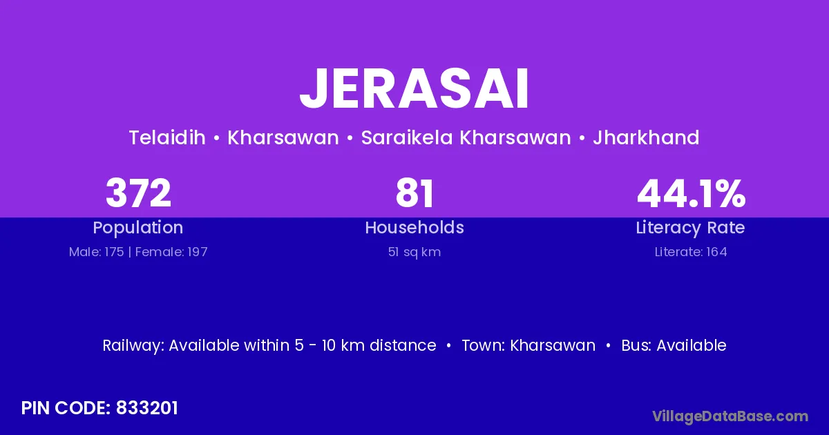 According to Census 2011 information, the village code of Jerasai village is 833201.