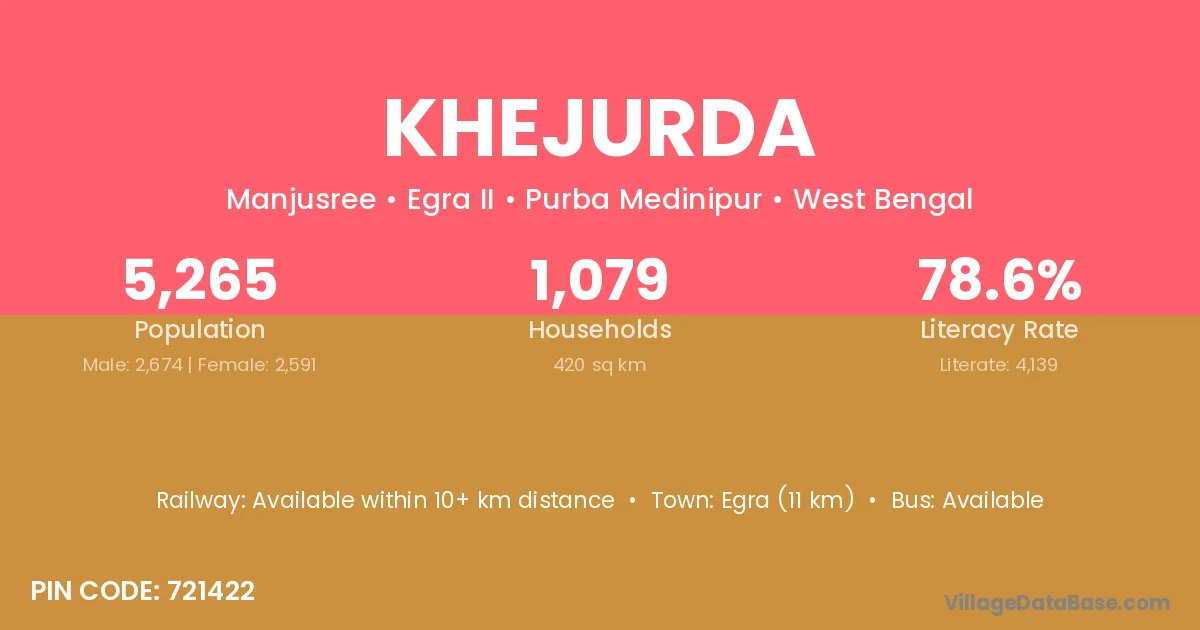 Khejurda village has a total population of 1,195 people, of which 580 are males and 615 are females.