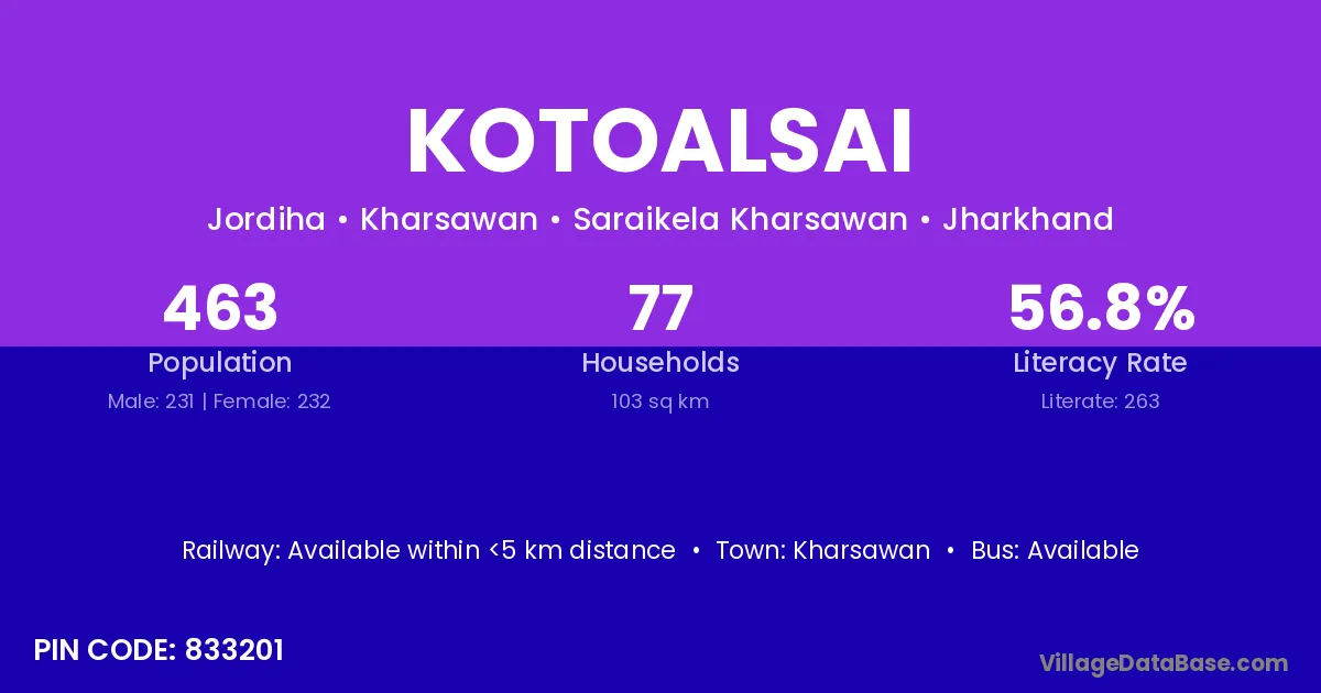 Kharsawan is the nearest town to Kotoalsai village for major economic activities
