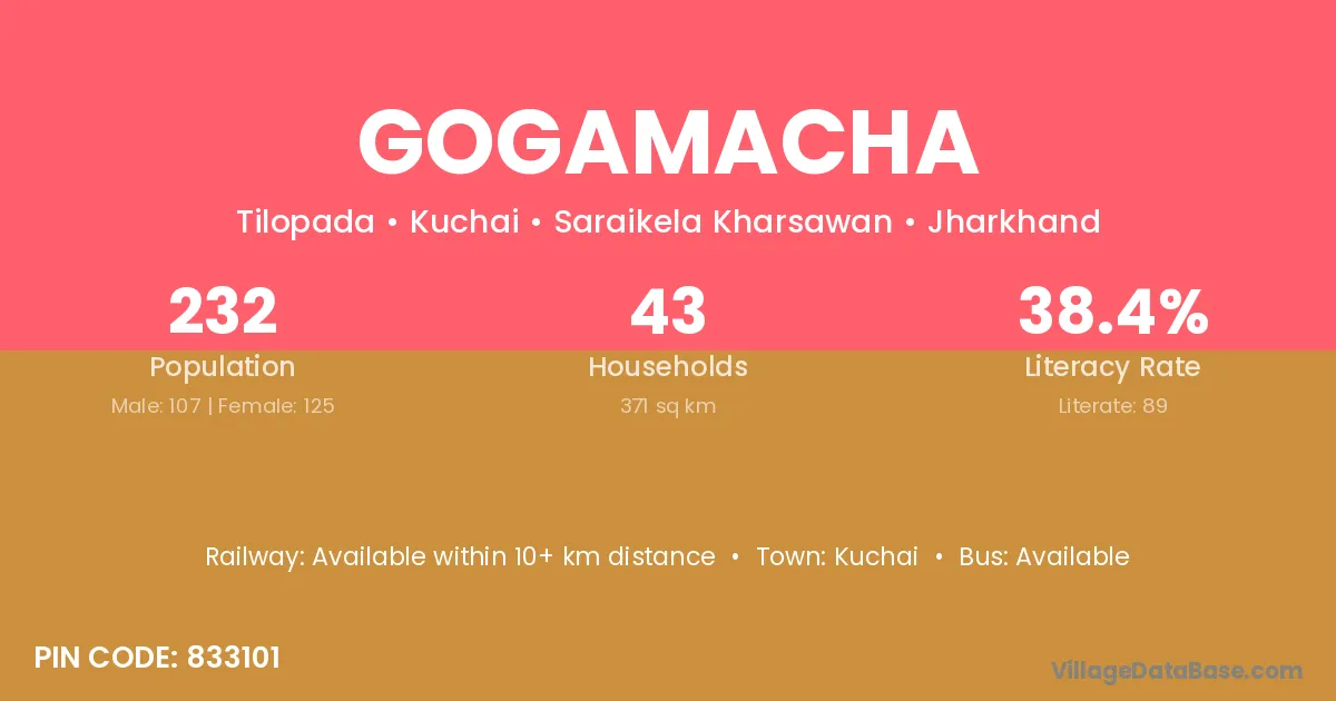 Gogamacha village has a total population of 232 people, of which 107 are males and 125 are females.