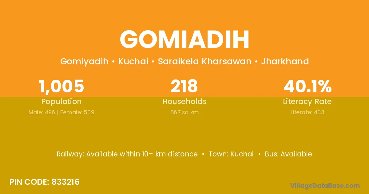 According to Census 2011 information, the village code of Gomiadih village is 833216.