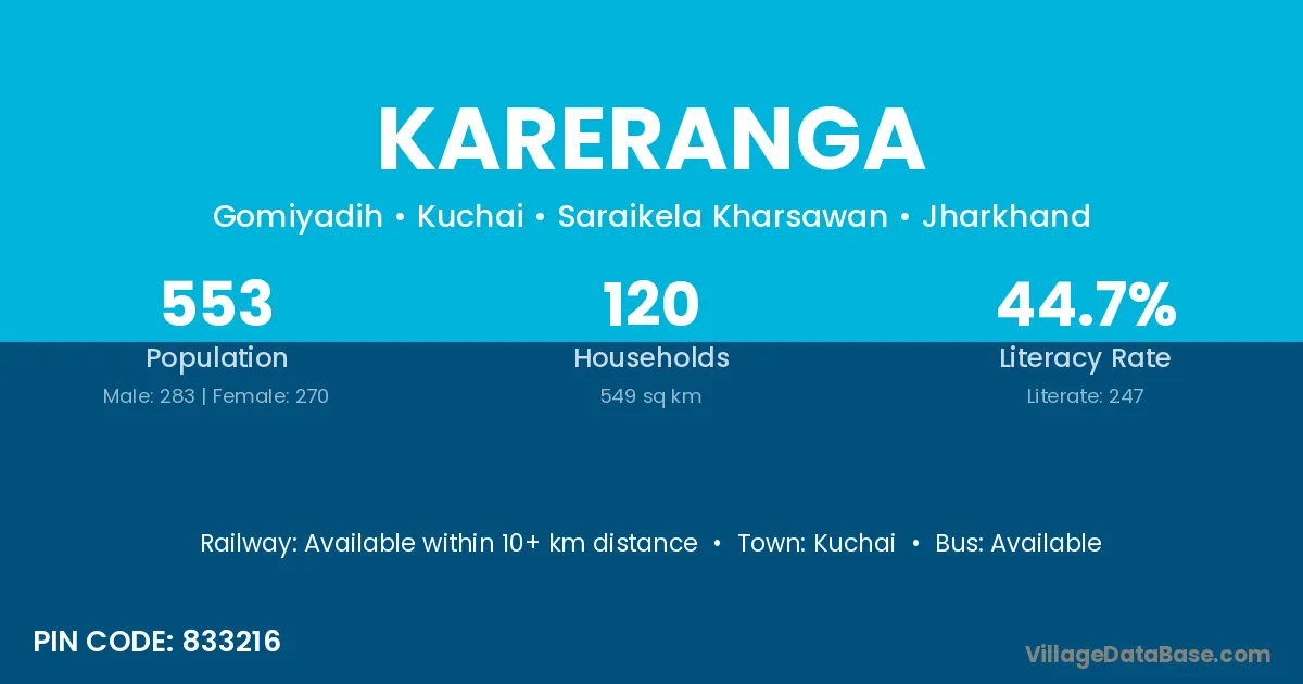 Kareranga village has a total population of 553 people, of which 283 are males and 270 are females.