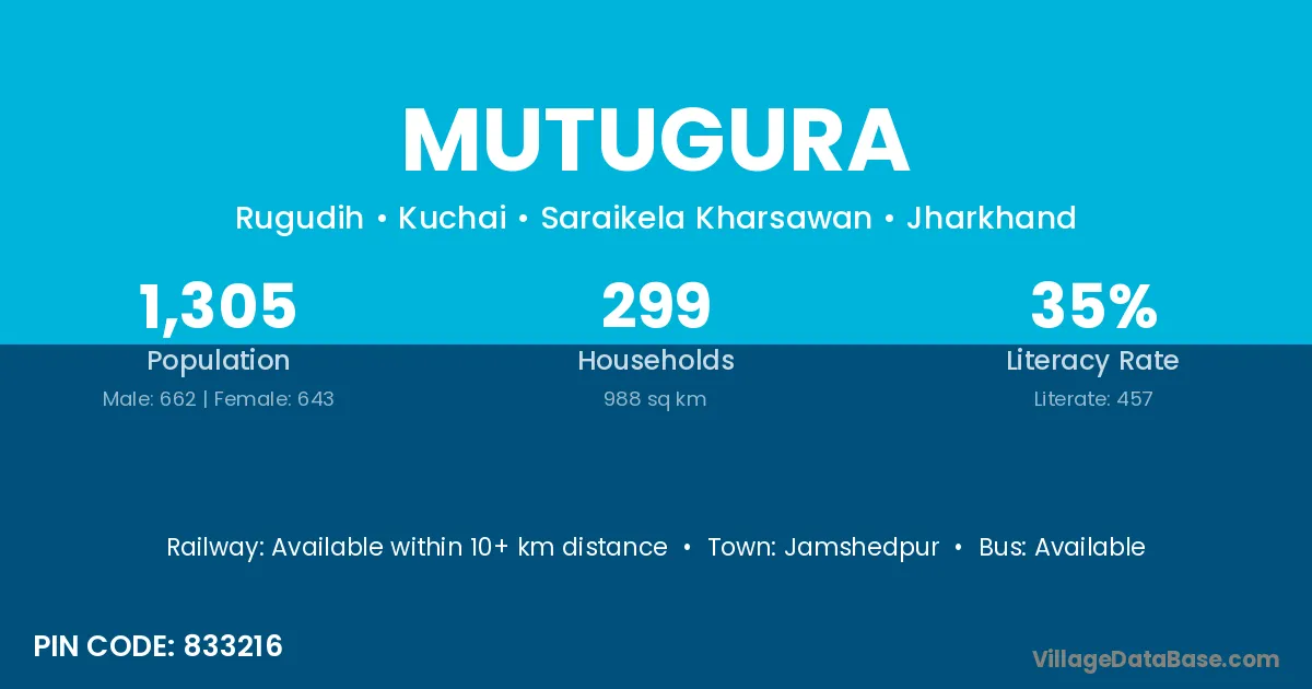 Jamshedpur is the nearest town to Mutugura village for major economic activities