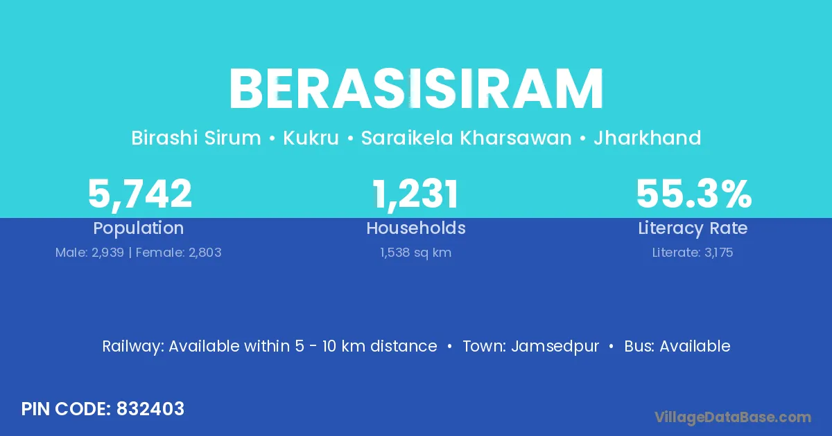 Berasisiram village is located in the Kukru Subdivision of the Saraikela Kharsawan district in Jharkhand .