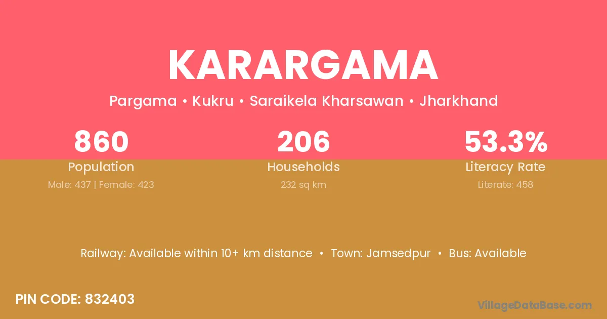Jamsedpur is the nearest town to Karargama village for major economic activities