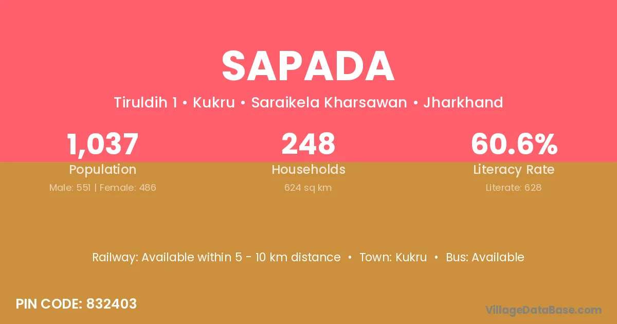 Sapada village is located in the Kukru Subdivision of the Saraikela Kharsawan district in Jharkhand .