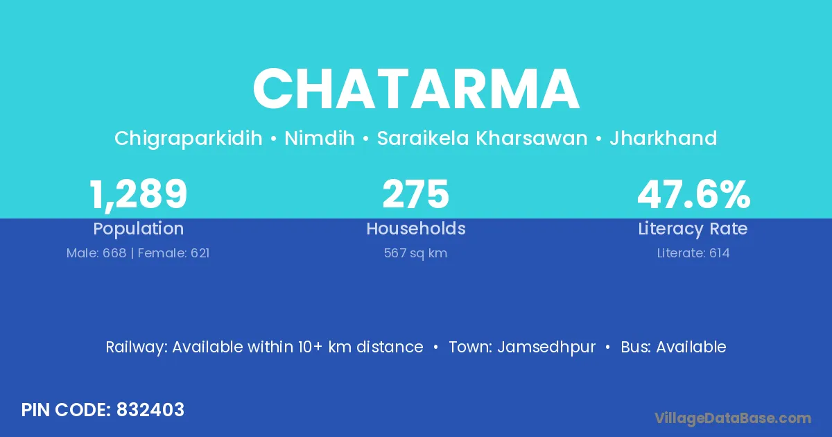 Jamsedhpur is the nearest town to Chatarma village for major economic activities