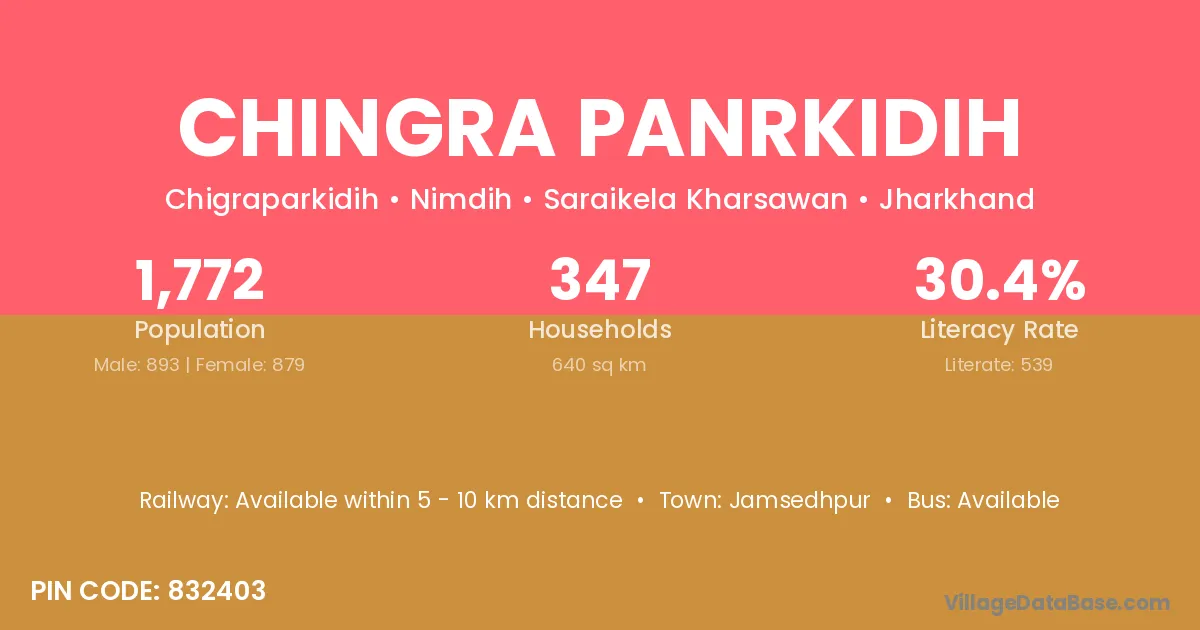 Chingra Panrkidih village has a total population of 1,772 people, of which 893 are males and 879 are females.