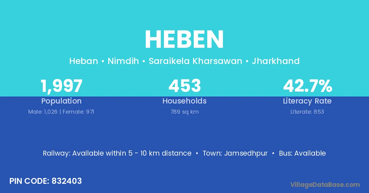 Heben village is located in the Nimdih Subdivision of the Saraikela Kharsawan district in Jharkhand .