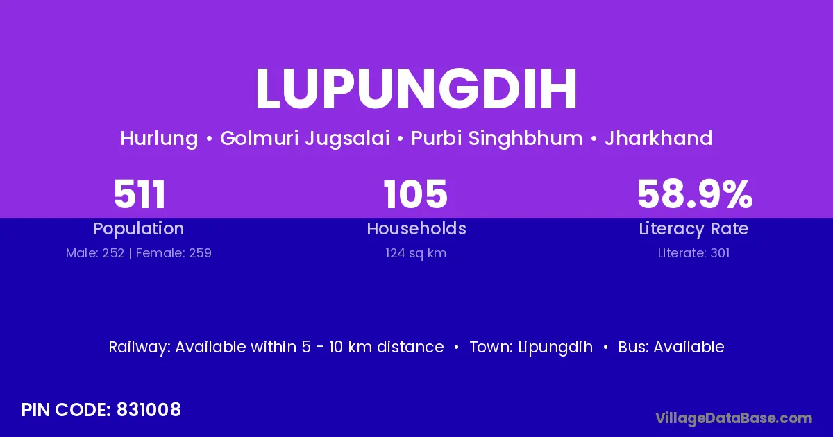 Jamsedhpur is the nearest town to Lupungdih village for major economic activities