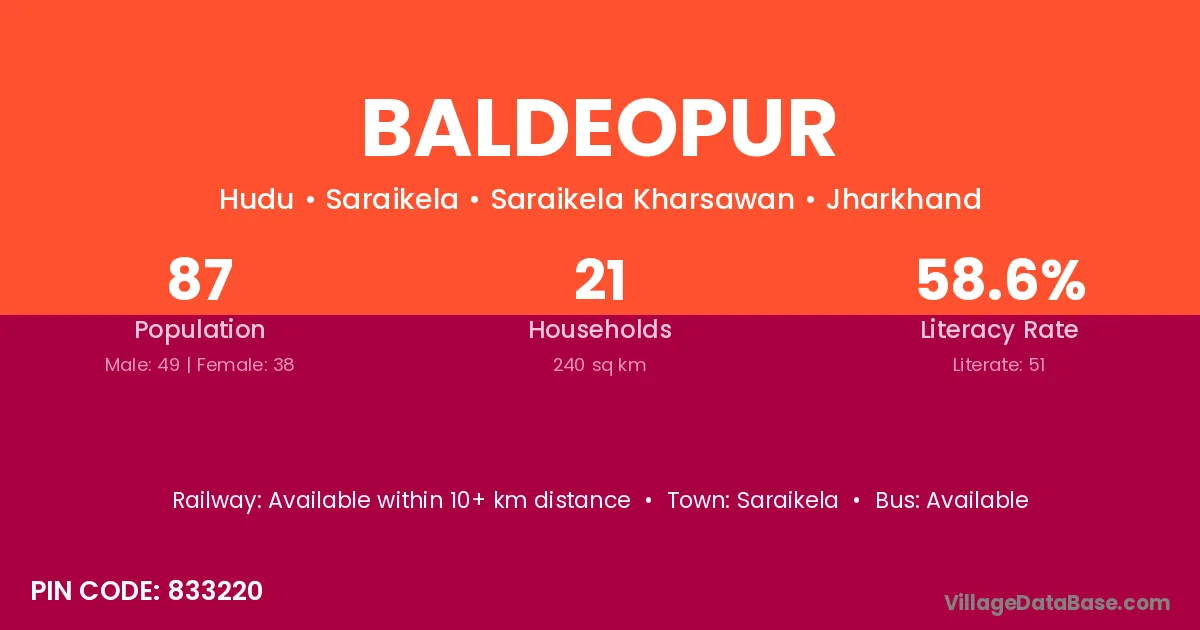 Saraikela is the nearest town to Baldeopur village for major economic activities