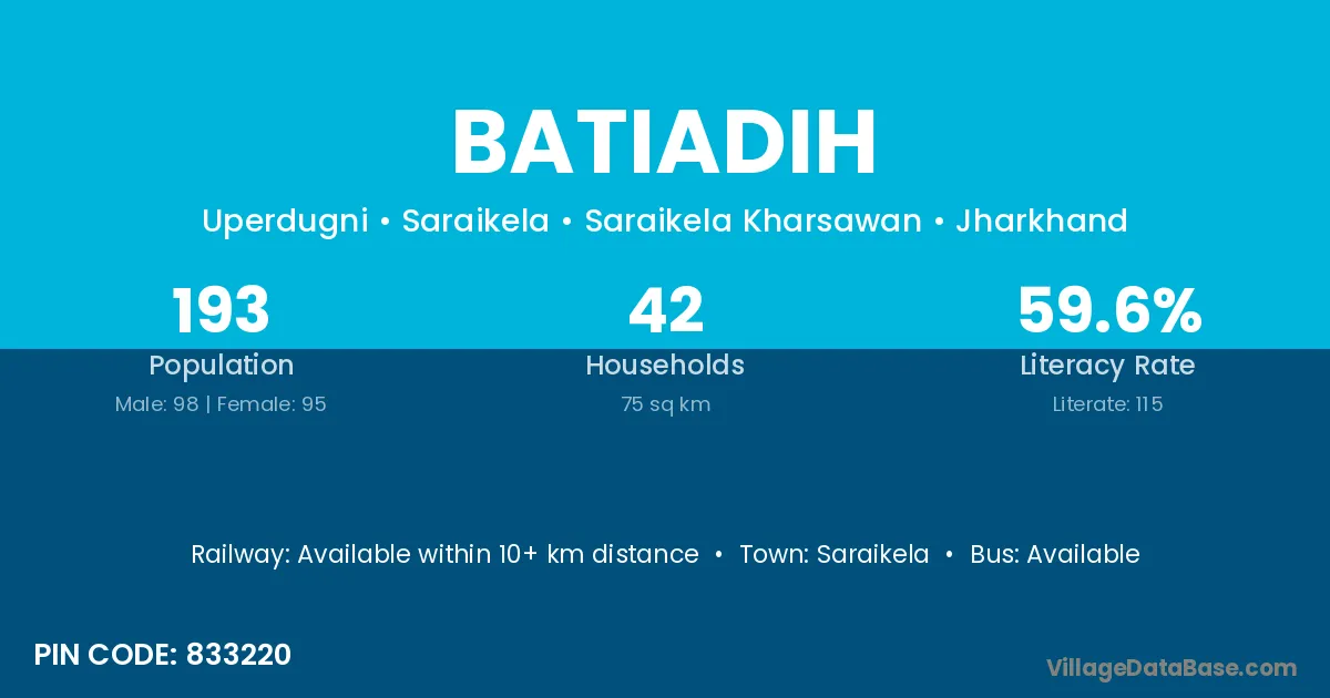 Saraikela is the nearest town to Batiadih village for major economic activities