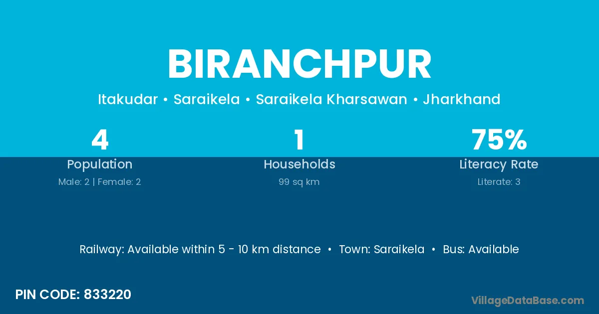 Saraikela is the nearest town to Biranchpur village for major economic activities