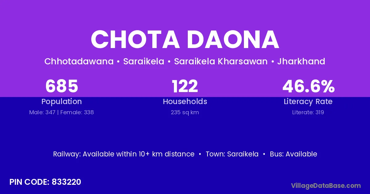 Saraikela is the nearest town to Chota Daona village for major economic activities
