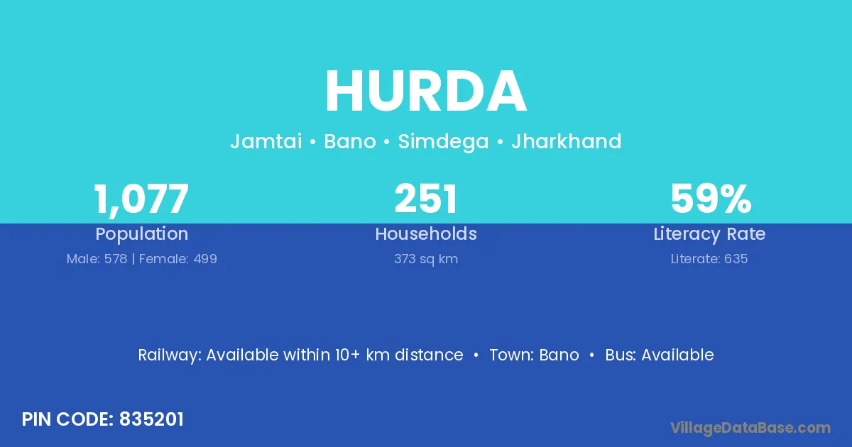According to Census 2011 information, the village code of Hurda village is 835201.