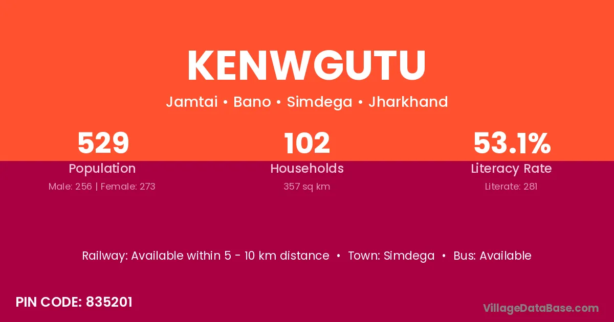 Kenwgutu village has a total population of 529 people, of which 256 are males and 273 are females.