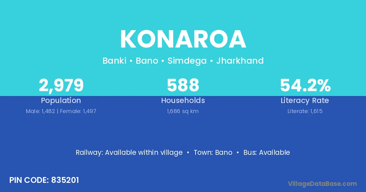 Konaroa village is located in the Bano Subdivision of the Simdega district in Jharkhand .