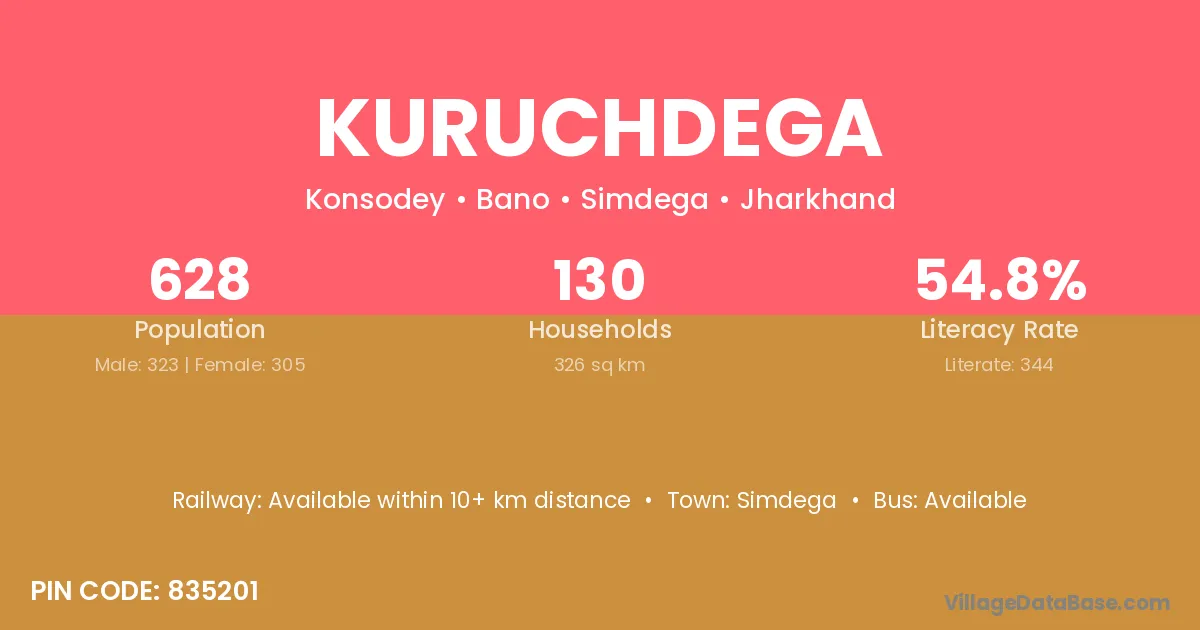 Simdega is the nearest town to Kuruchdega village for major economic activities