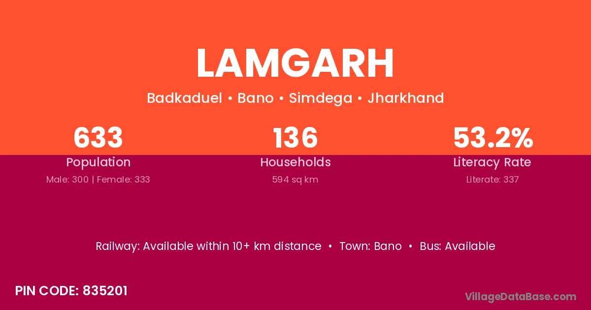 According to Census 2011 information, the village code of Lamgarh village is 835201.