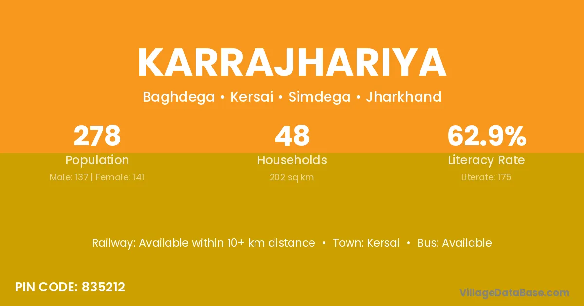 Karrajhariya village has a total population of 278 people, of which 137 are males and 141 are females.