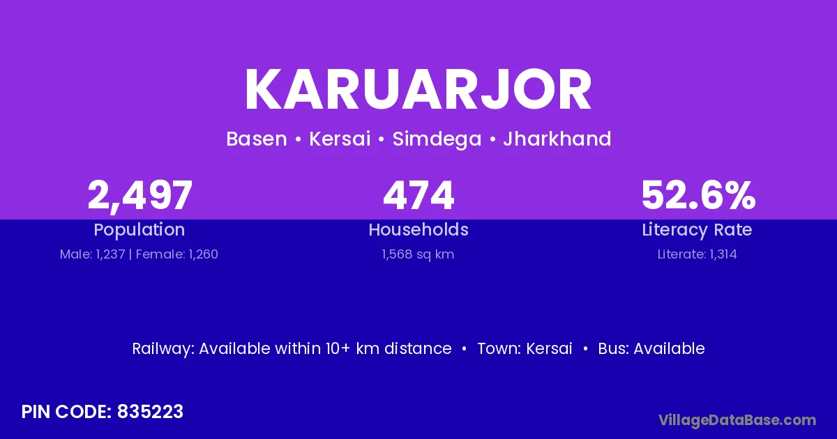 According to Census 2011 information, the village code of Karuarjor village is 835223.